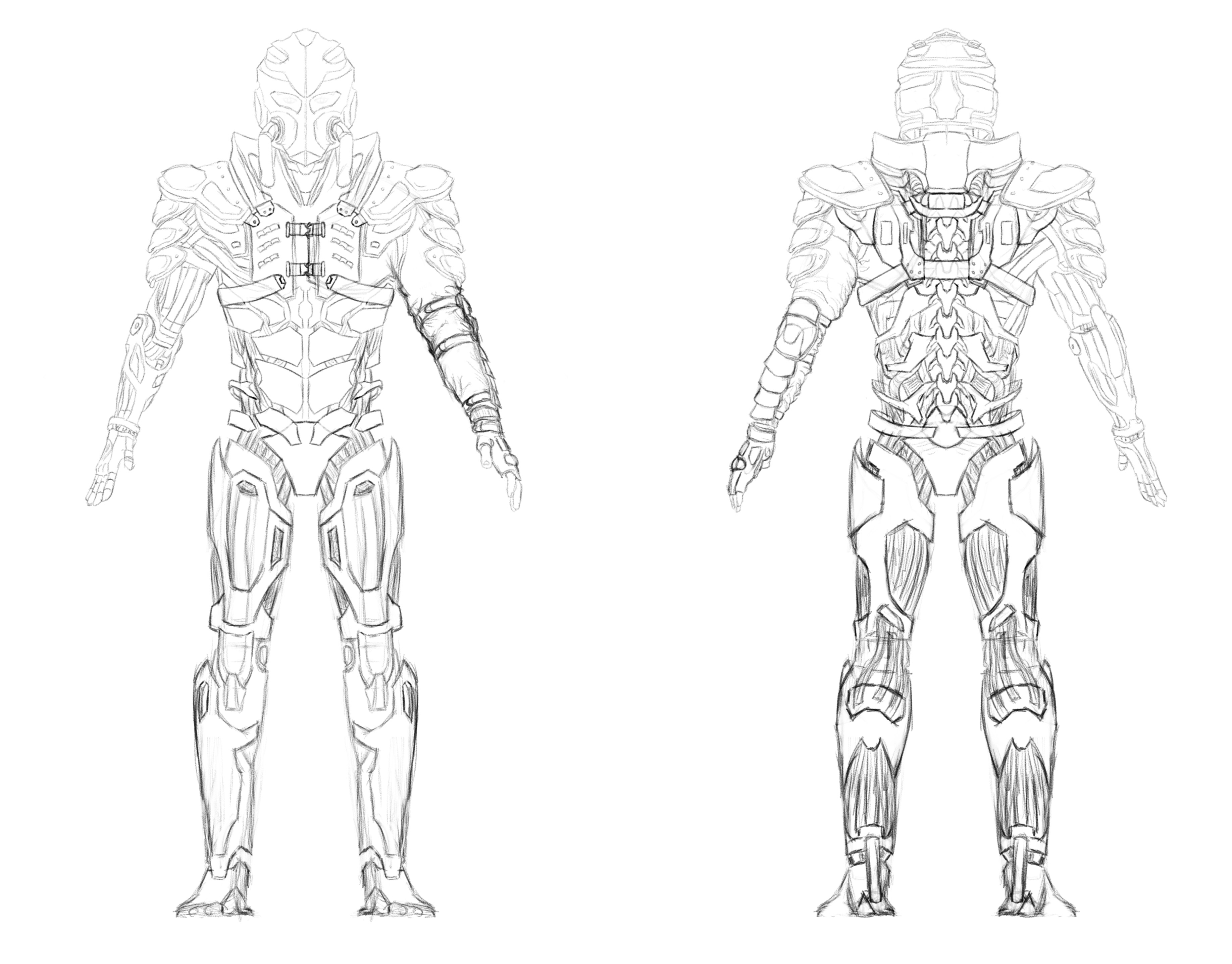 During the end of the semester I unified all the previous tests and ideas into a new full concept sketch of the body and prensented it to the class. This would serve as my guide for the next couple of months, where I would be modelling the rest of the body.
