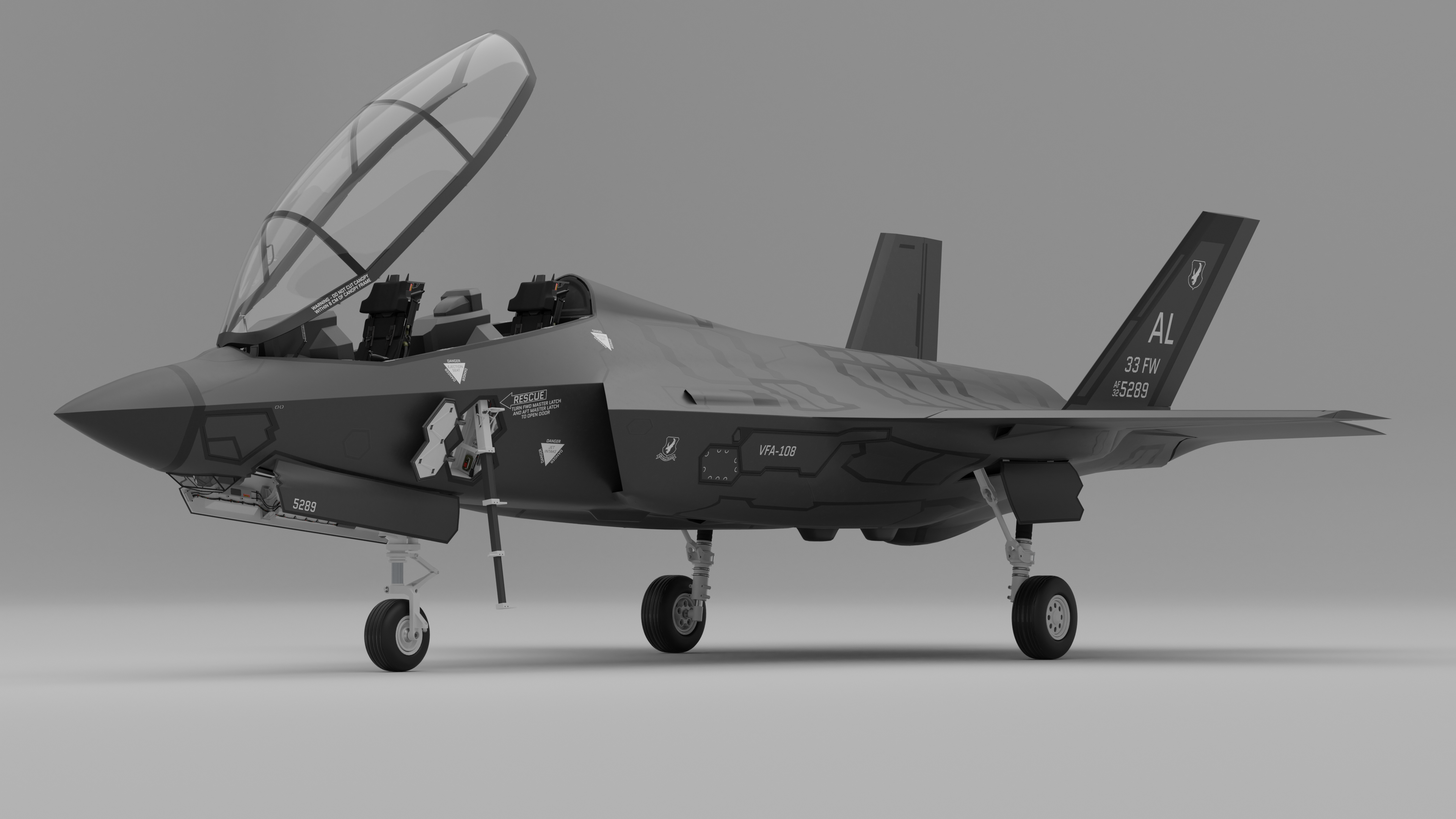 The main project around which this all started is this F-35. I wanted to make a fictional 2-seater variant to see what that could look like. A lot of the time spent on this project went into recreating the cockpit to a faithful degree. Finding good references for such a state-of-the-art jet is not easy and since the entire plane was already a fictional variant, I filled in details with my own adaptations when needed.