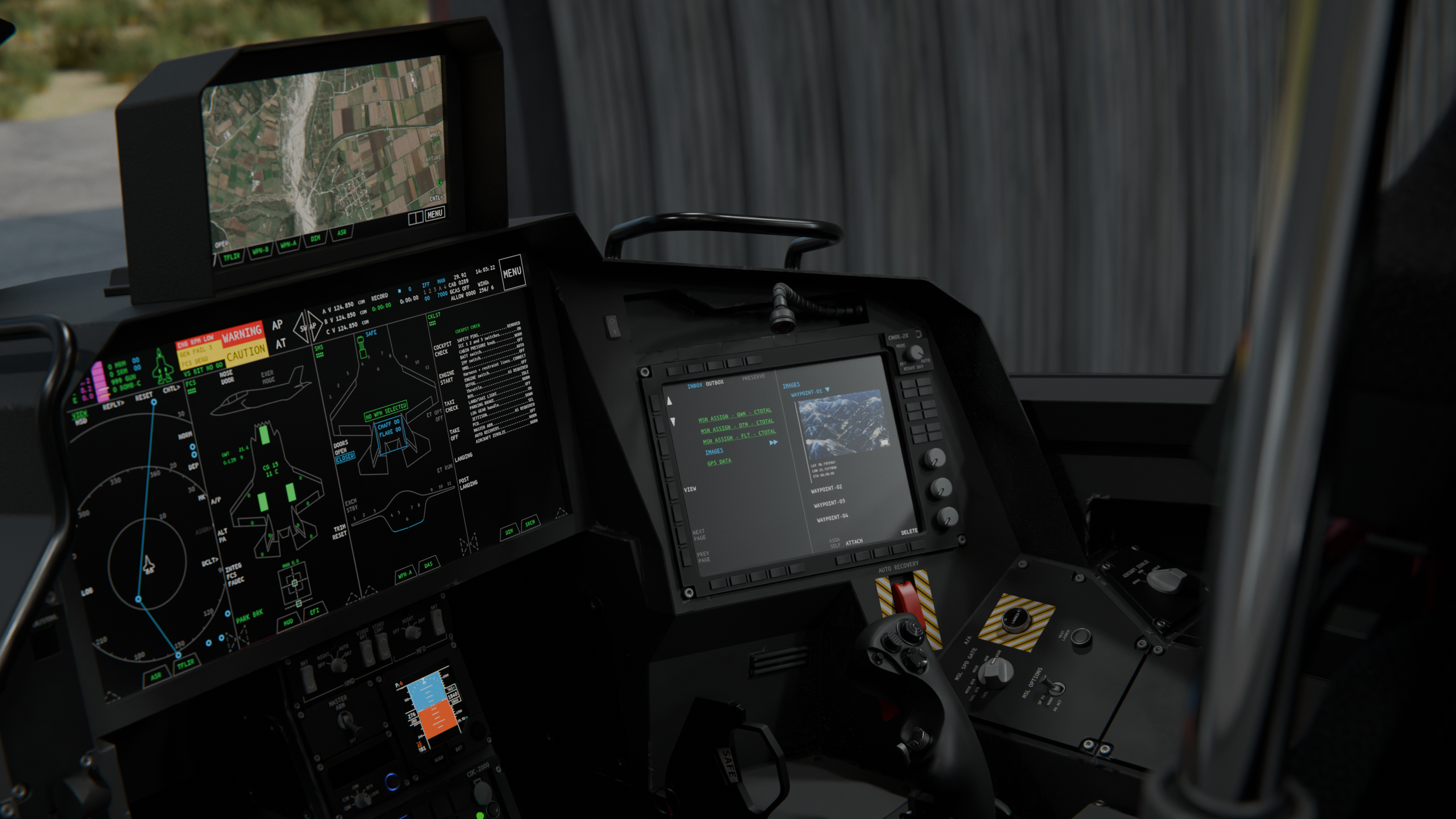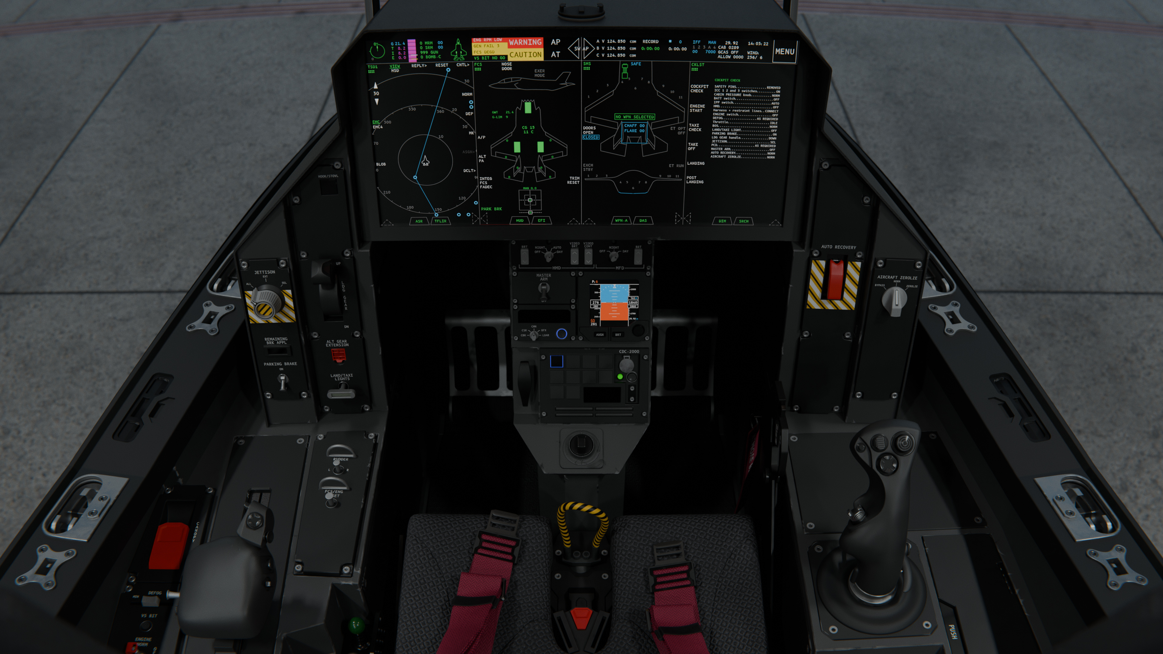 The cockpit of the F-35 is dominated by the touch controlled PCD, or Primary Control Display. It features a highly customizable interface made up of up to 4 columns and a info bar at the top, linking to the most important controls.