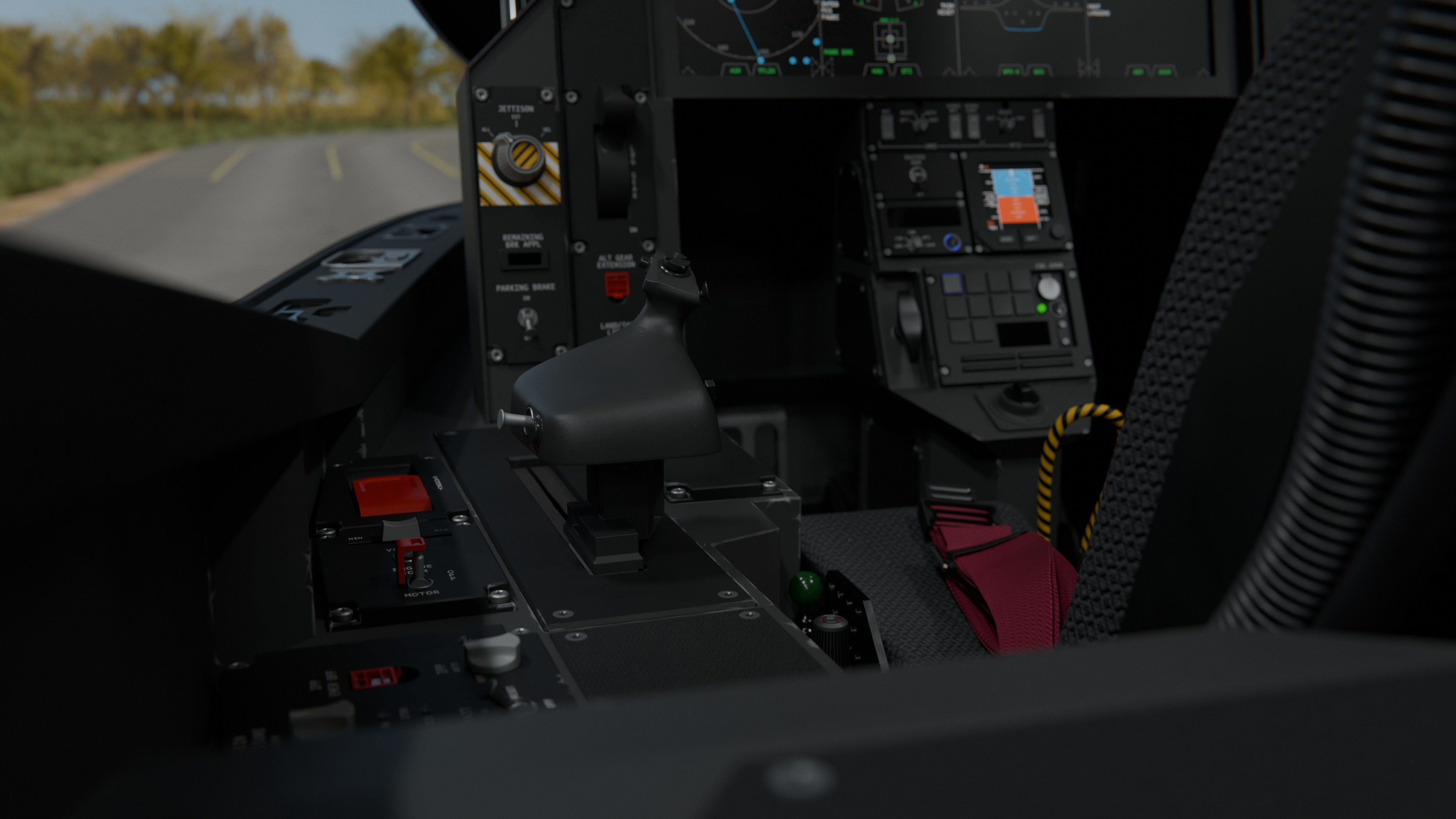 Most essential flight controls like throttle, flight stick and landing gear have their dedicated sections on the dashboard. The altimeter sits centered on the dash, along wtih the master arm switch and controls for the PCD and helmet-mounted HUD.