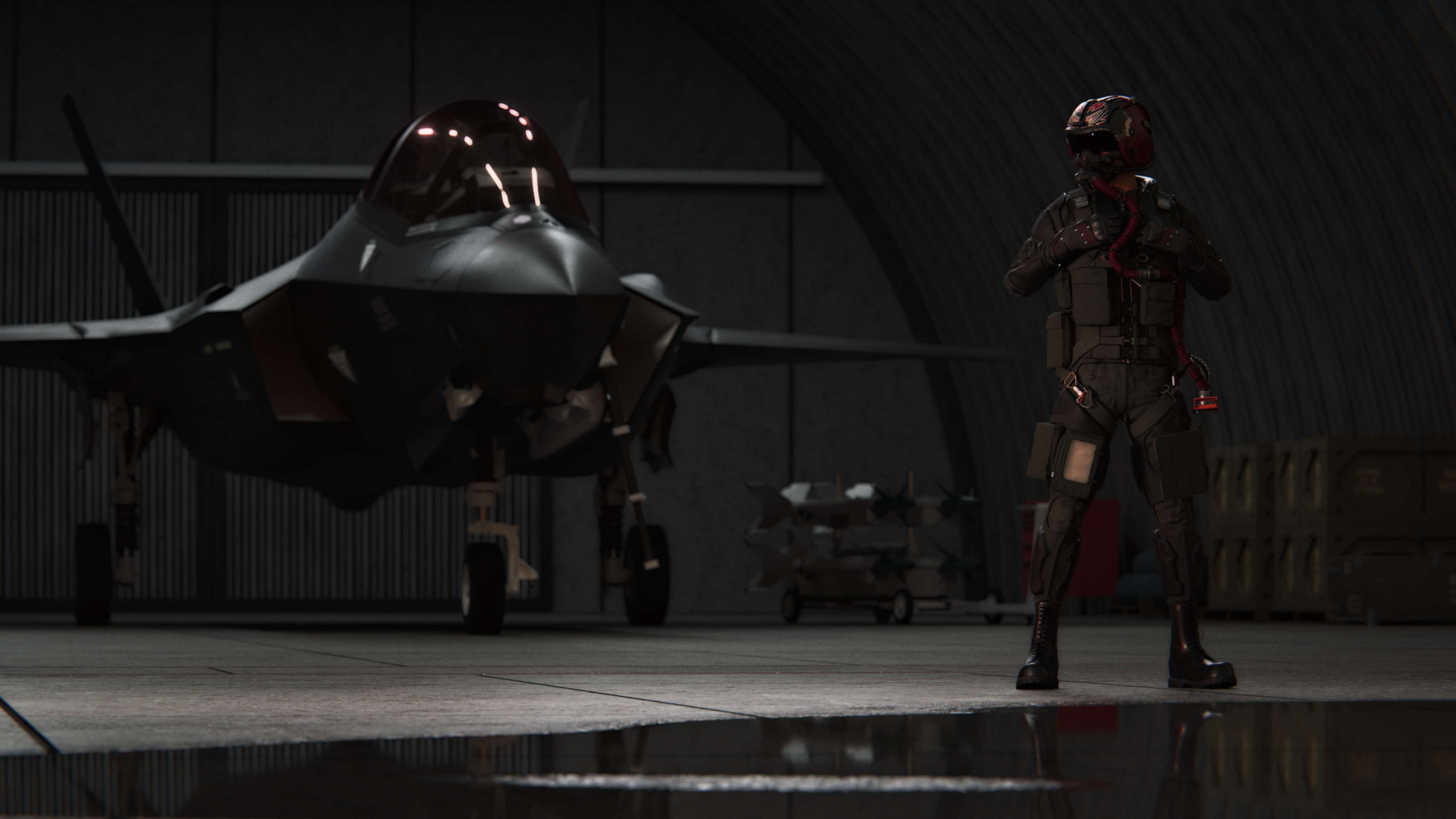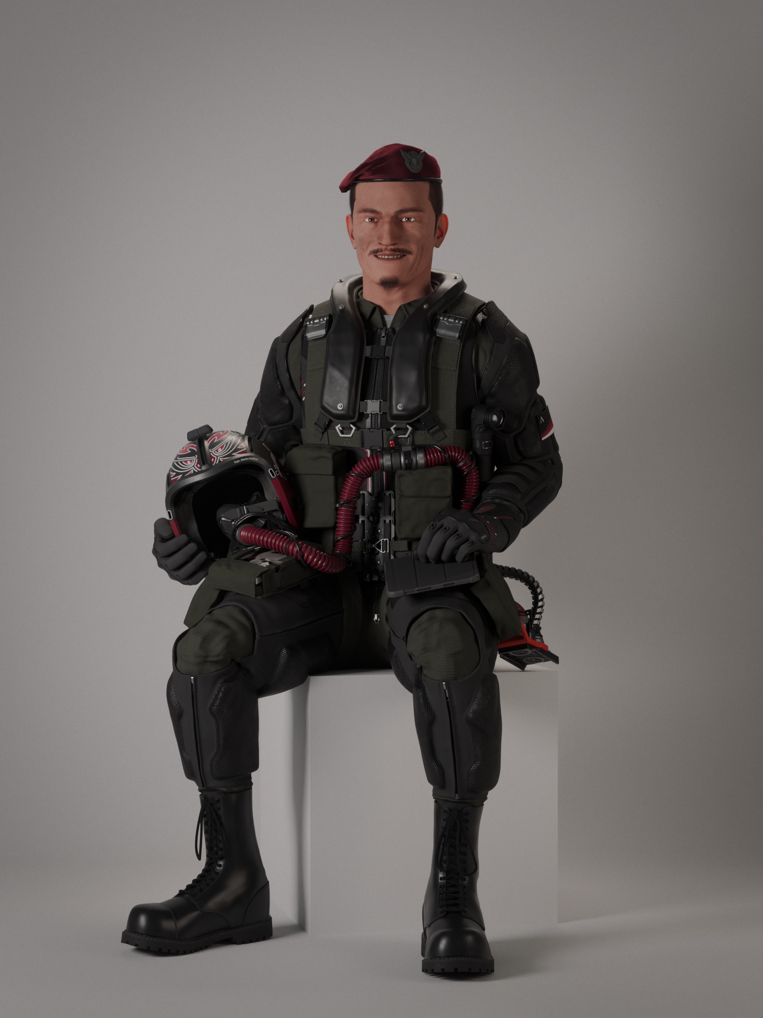 As a side project and distraction to the jet, I was looking into making a pilot for it. My aim was to get hands on with character design and how to build them. I quickly went from messing around with premade models to making my own, since I wanted more resolution and control over them. I specifically wanted to create my own design in this case and not build it fully after real world reference. As I continously learned and improved with tools like Substance Painter and Blender, I applied these directly on projects like these.